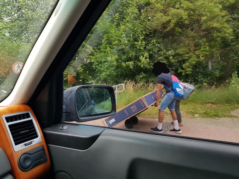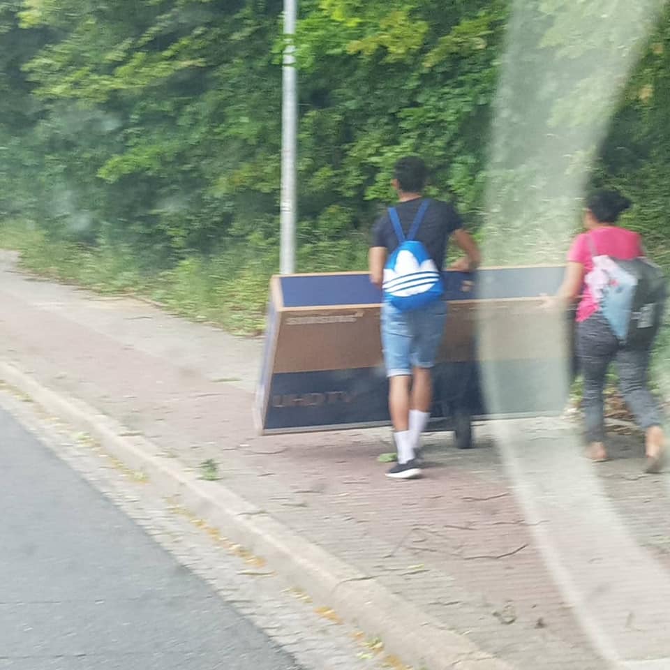 Sie müssen sich manchmal selbst verwöhnen. # Merkels Wirtschaftsflüchtlinge auf dem Heimweg mit ihrem neuen 60-Zoll-4K-Flachbildfernseher, schließlich müssen sie den Fußball # WorldCup im großen Stil verfolgen.