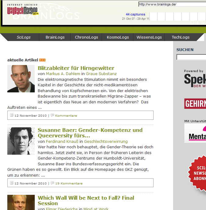 In meinem Archiv habe ich einige BrainLogs-Artikel,