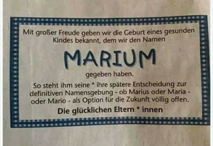 ... beim Vornamen Marium gebe es irgendwelche Wahlmöglichkeiten hinsichtlich des Geschlechts?!?