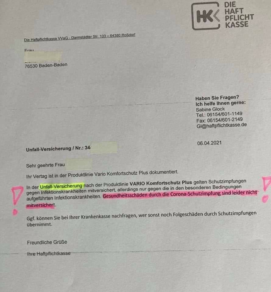 Erst mal die Impfung überleben. Versicherungen wissen offenbar mehr ... (Coronawahn)