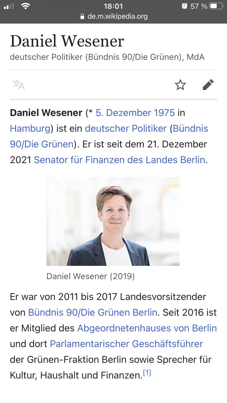 Darf ich vorstellen, der neue Finanzsenator Berlins, Daniel Wesener. Von 1996-2003 studierte er Kunstgeschichte und brach das Studium ohne Abschluss ab. Keine abgeschlossene Ausbildung, nie produktiv gearbeitet außerhalb der Politik.