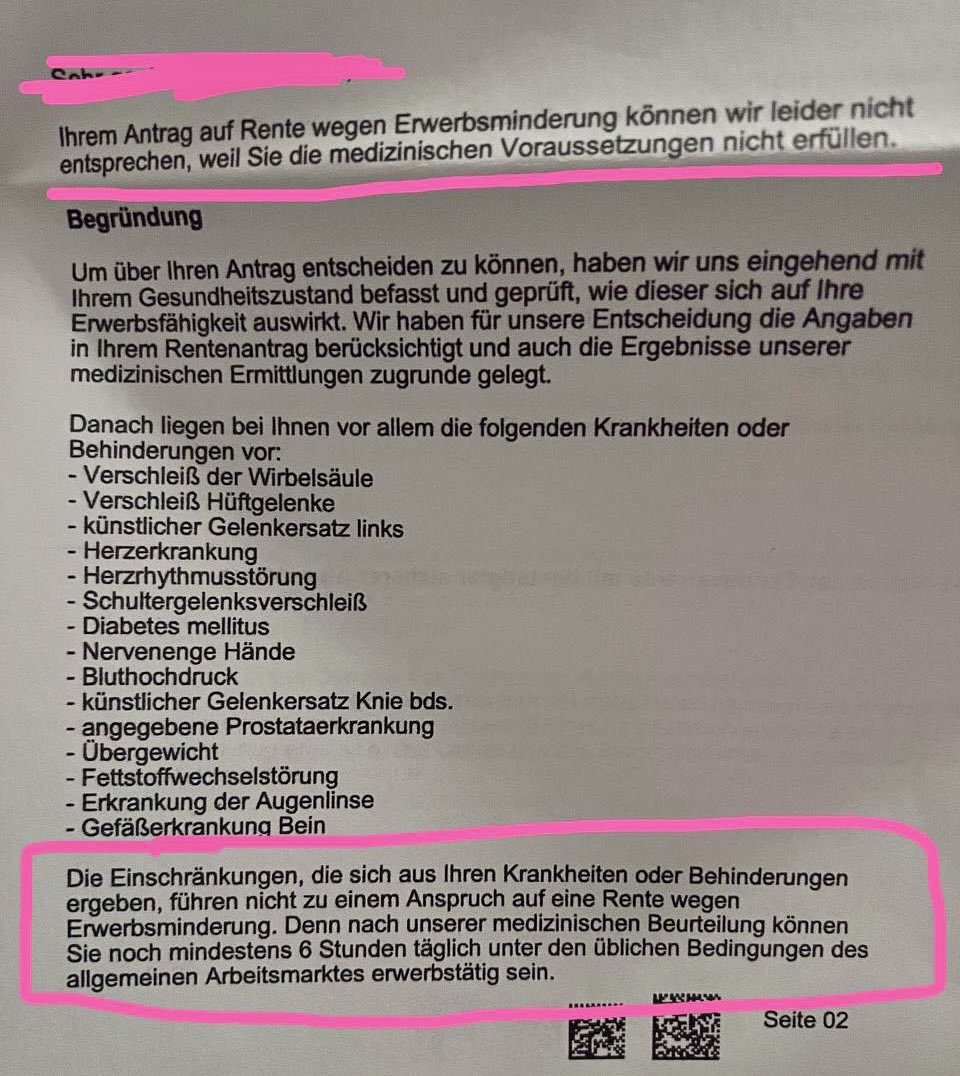 Vater, 45 Jahre als Steinmetz gearbeitet. Antrag auf Erwerbsminderungsrente abgelehnt.