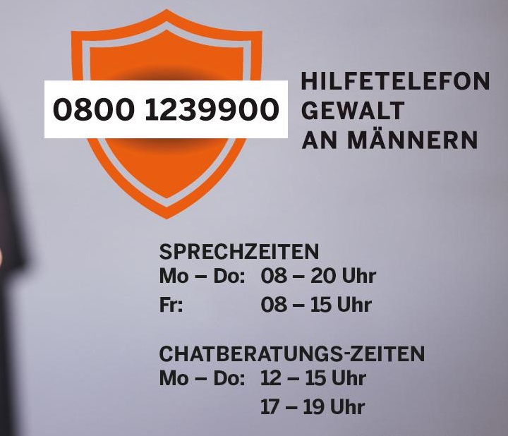 Das "Hilfetelefon" für Männer ... Mo bis Do von 8-20 Uhr, Fr von 8-15 Uhr ... https://www.maennerhilfetelefon.de/