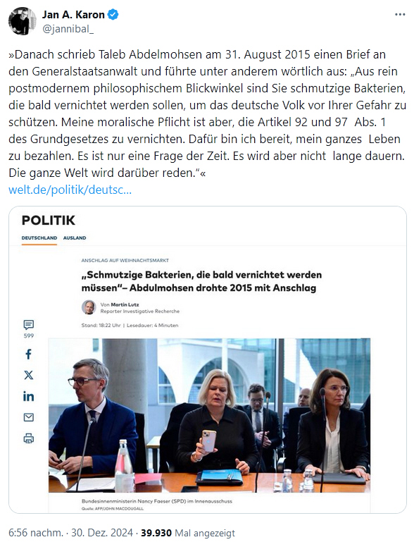 - Nicht vergessen: Assads Schergen werden jetzt in Germoney Asyl beantragen und auch bekommen. - Günni, 01.01.2025, 00:18