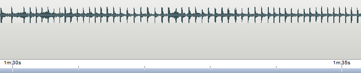 In der Ton-Grafik sind rund 850 eindeutig zu sehende Schüsse. Da eine Menge Schüsse im allgemeinen Geräuschpegel zu hören, in der grafischen Darstellung aber nicht zu sehen sind, gehe ich von deutlich über 1000 Schüssen aus.