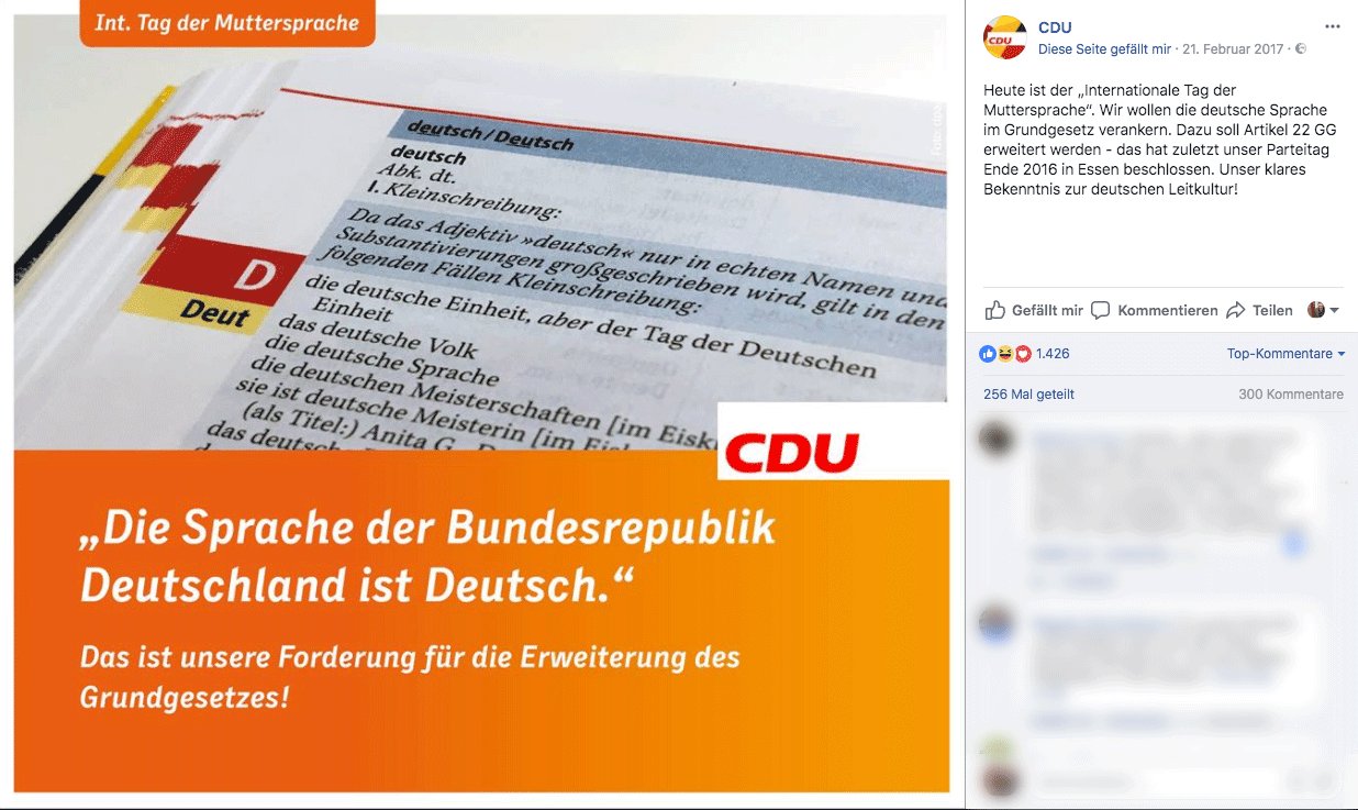 Im Deutschen Bundestag wurde auch von der CDU ein Antrag auf Verankerung von Deutsch als Landessprache im GG abgelehnt. Noch vor einiger Zeit war genau dies selbst ein Ansinnen der noch halbwegs ungemerkelten CDU.